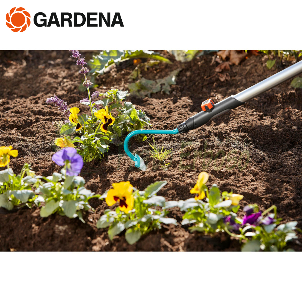 La zappa per diserbo combisystem GARDENA è realizzata in acciaio di prima qualità con rivestimento in materiale termoindurente con una lama in acciaio inossidabile per proteggere il prodotto dalla corrosione.