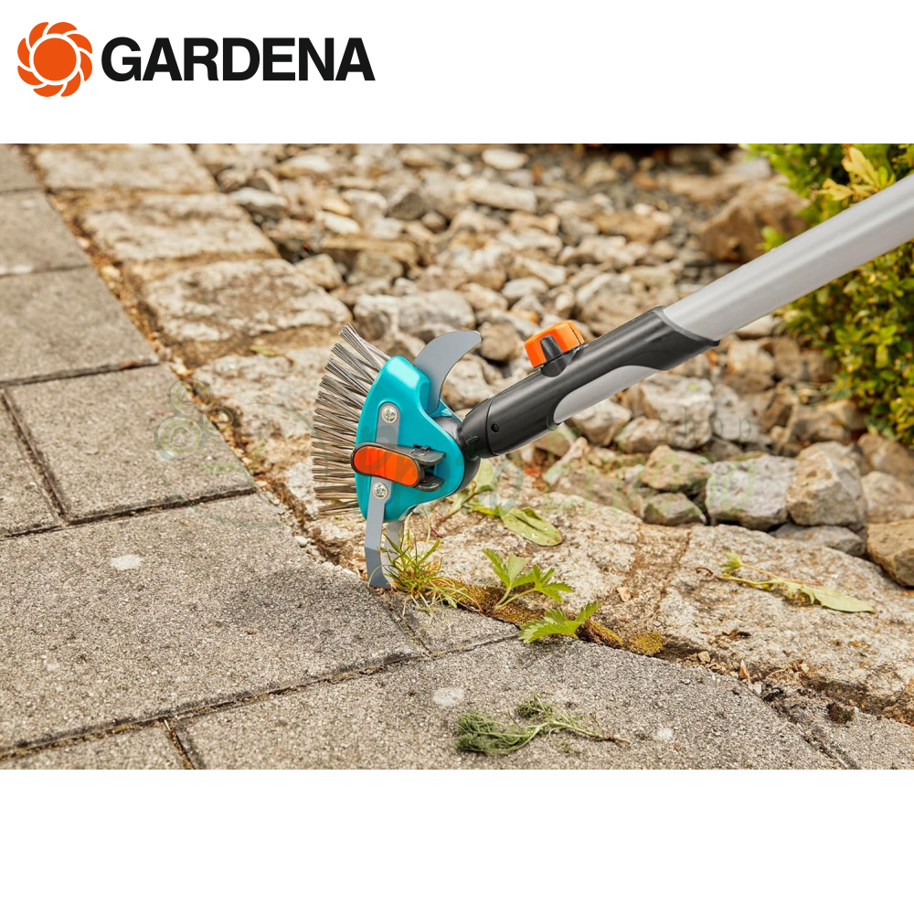 La spazzola 3 in 1 di 3608-20 della serie combisystem di Gardena è un utensile innovativo, facile e versatile per rimuovere le erbacce e il muschio dal giardino o dal portico.