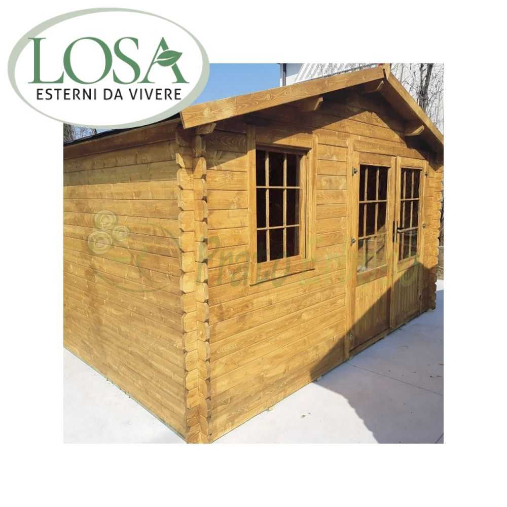Ines è in legno di abete impregnato in autoclave di color marrone essicato. E' costruita con tipologia blockhouse. E' munita di porta doppia con serratura. Lo spessore della parete è di 28 millimetri. Il tetto è realizzato con perline da 16 millimetri e cartonfeltro bitumato.