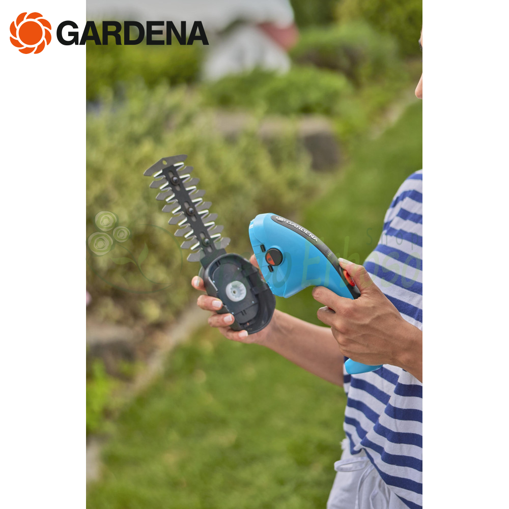Le lame di qualità raggiungono risultati di taglio perfetti e possono essere rimosse e sostituite con il semplice tocco di un pulsante, senza bisogno di attrezzi. n questo modo, le forbici per erba possono essere facilmente trasformate in cesoie per siepi.