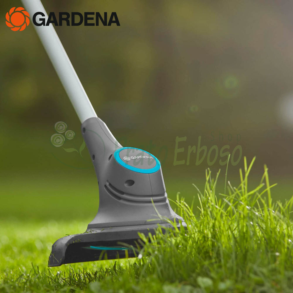 Il trimmer a batteria SmallCut Li-23R 9822-20 di Gardena è l'ideale per tagliare i bordi del prato e l'erba nei punti più difficili da raggiungere in giardino.