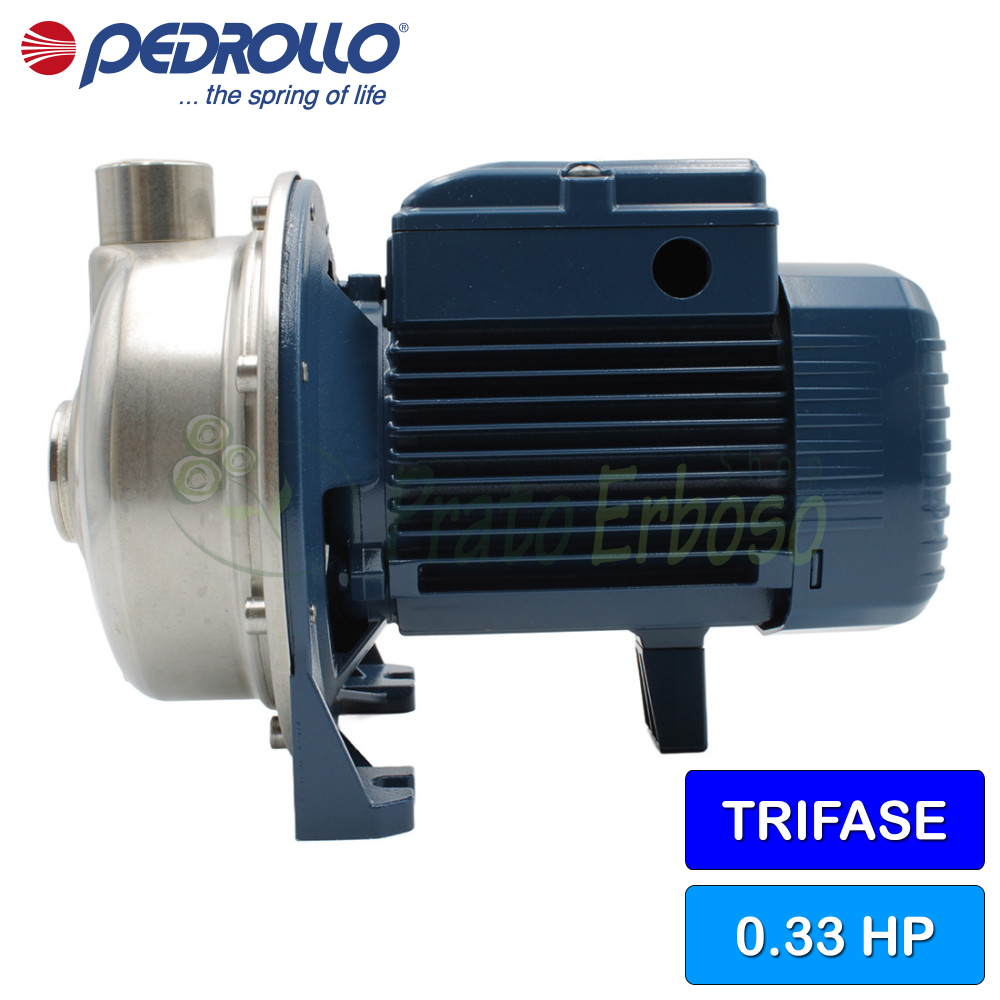 Il corpo pompa e la girante sono realizzati in acciaio inox AISI 304 mentre l'albero in acciaio inox AISI 431.