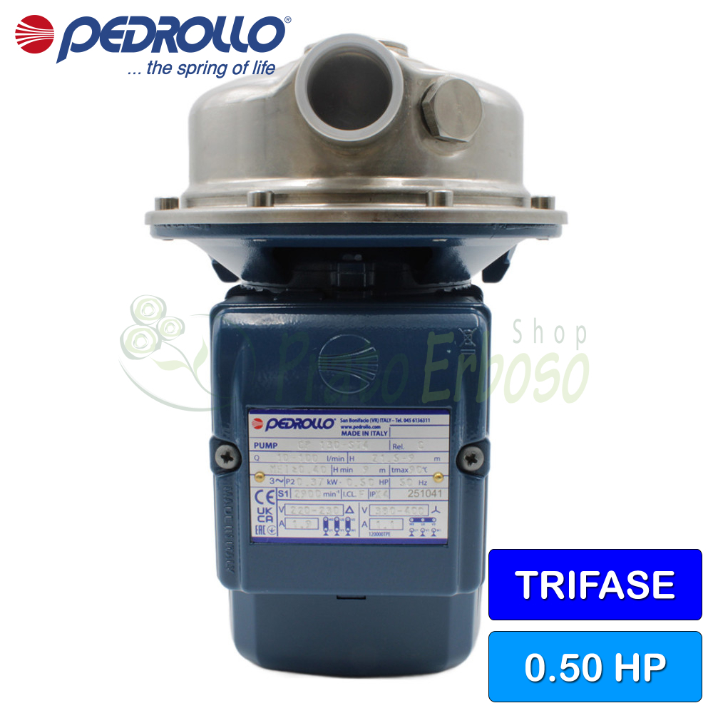 In acciaio inox AISI 304. Portata fino a 150 l/min (9 m³/h). Prevalenza fino a 32 m. Motore da 0.75 Kw (1 HP).