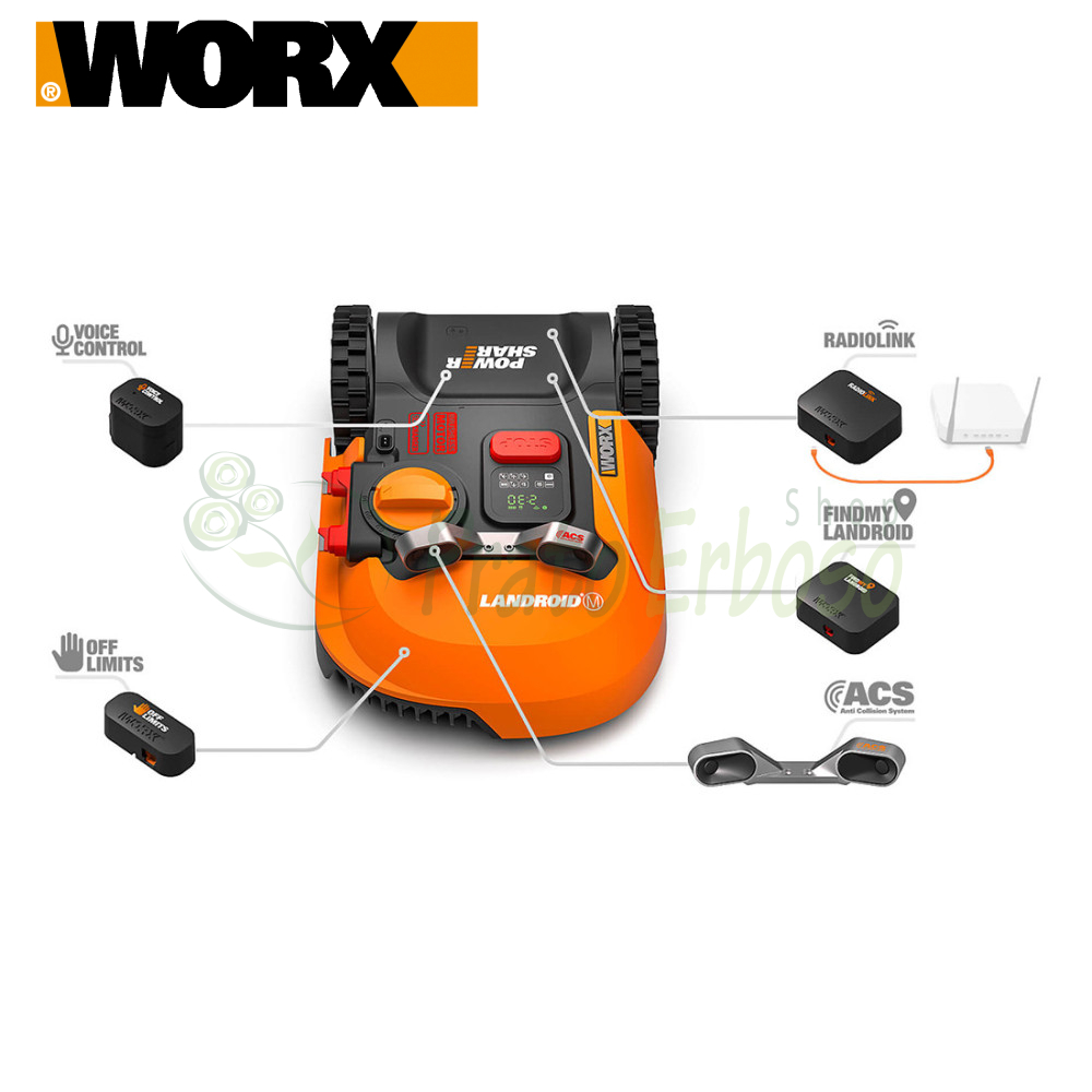 Il Landroid L1000 modello WR147E.1 della Worx è il robot tosaerba più piccolo della gamma. È adatto a prati fino a 400 metri quadri e può essere configurato a piacimento con l’aggiunta di tutti gli accessori in gamma.