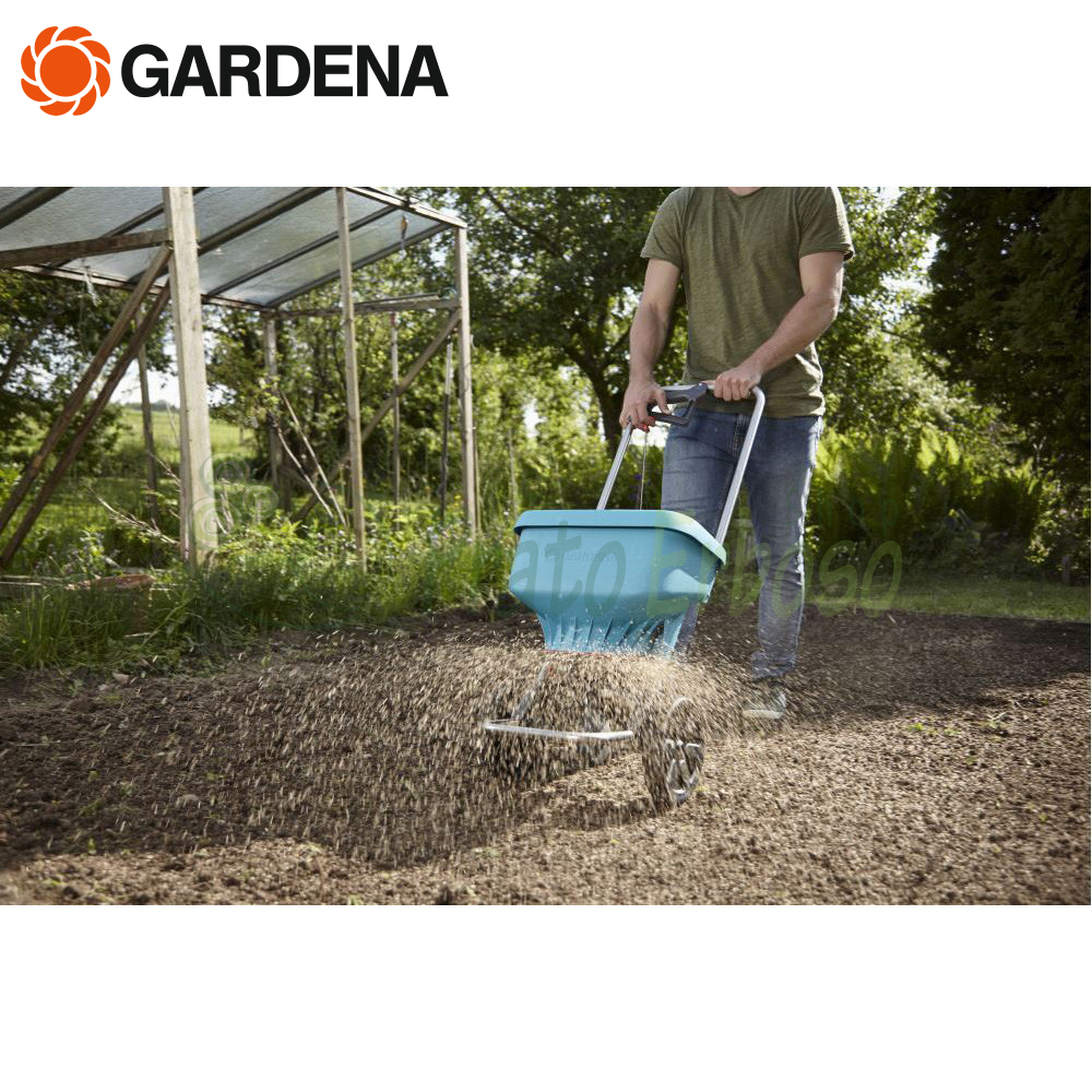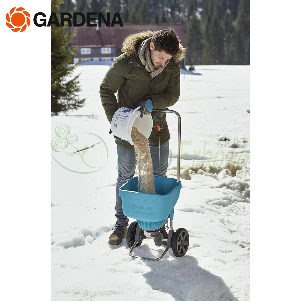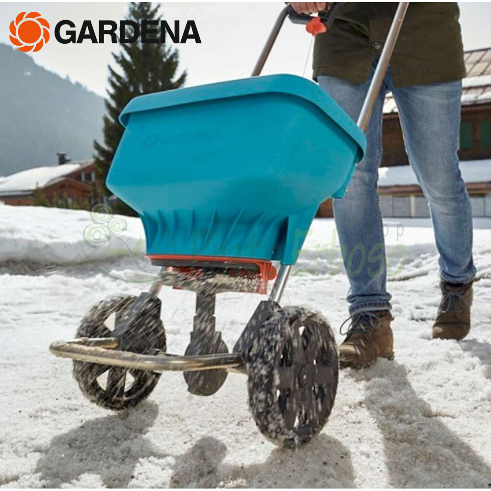 Lo Spandiconcime XL 436-20 di Gardena è ideale per la comoda distribuzione di fertilizzanti e sale da strada su aree più estese.