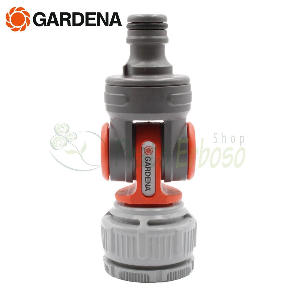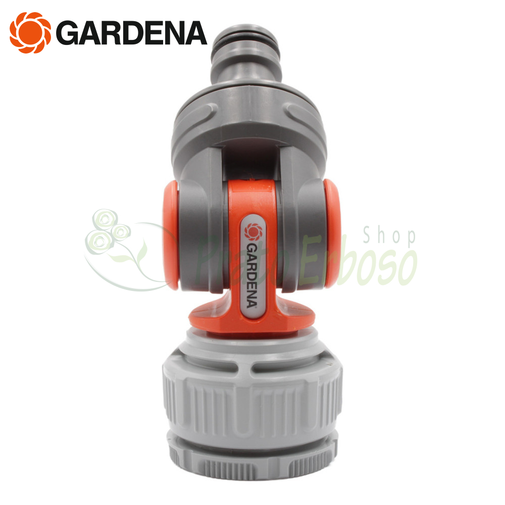 Der Gardena 2998-20 Schwenk-Wasserhahnverbinder verhindert dank seines Schwenk- und Drehgelenks ein Abknicken und Verdrehen des Schlauchs am Wasserhahn.