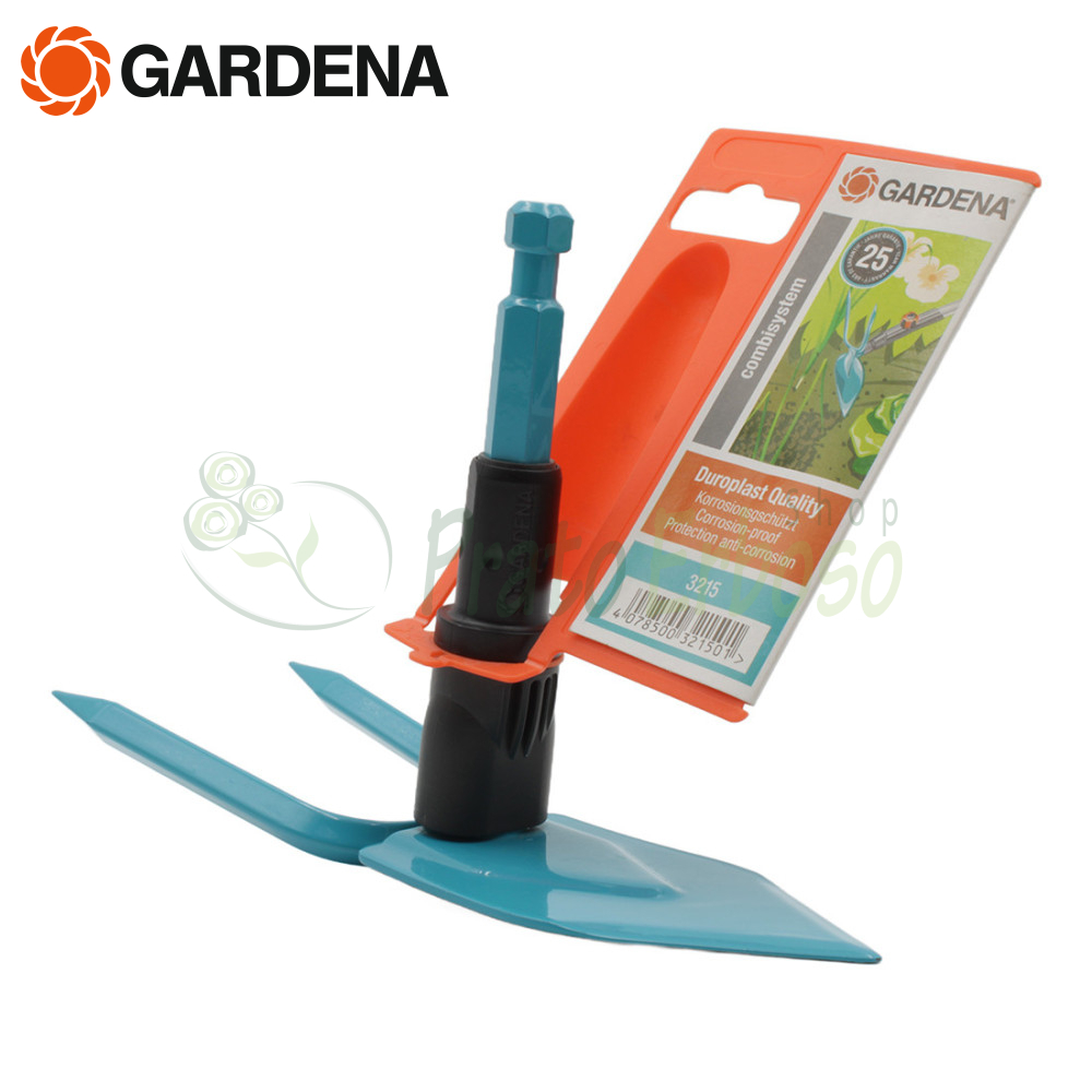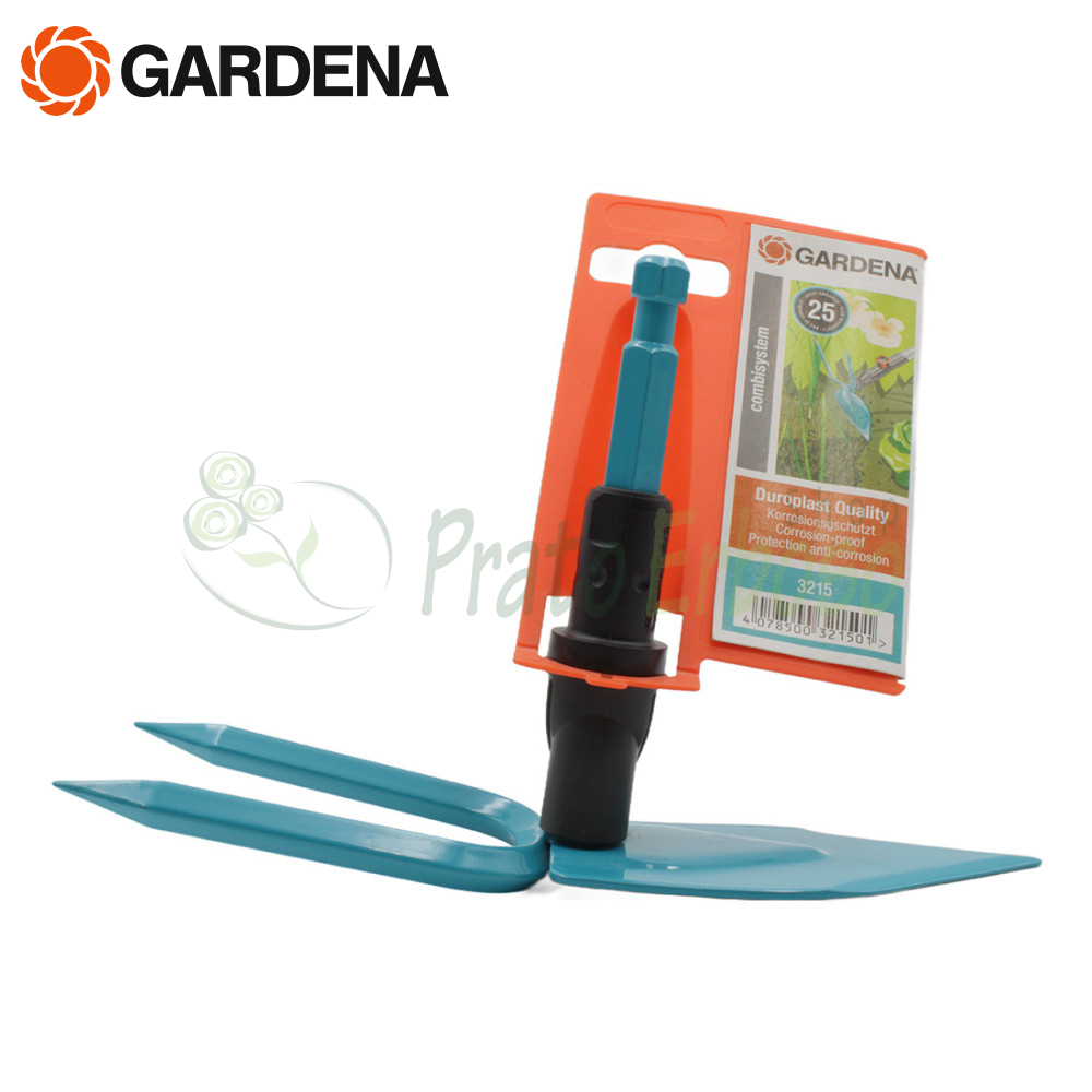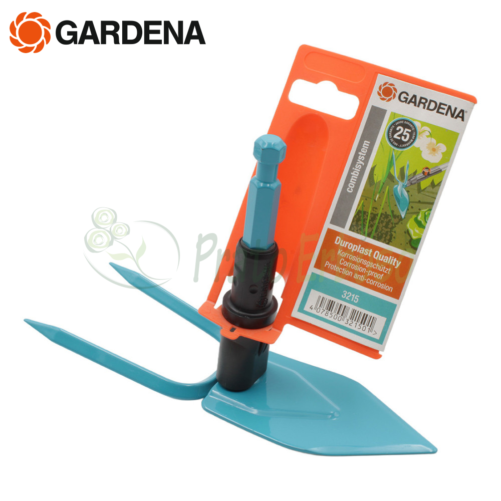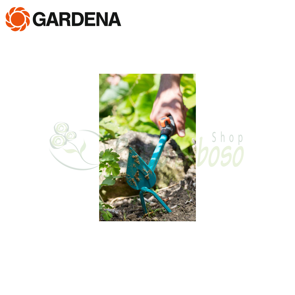 Die Gardena combisystem-Doppelzinkenhacke 3215-20 eignet sich besonders für die pflanzenlose Bodenpflege in dichten Kulturen und Blumenbeeten.