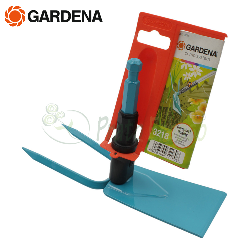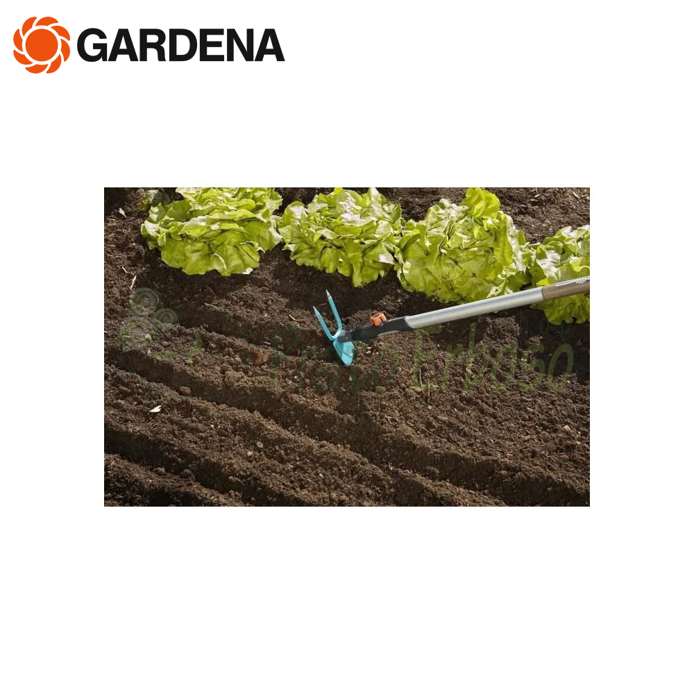 Die Gardena combisystem-Doppelzinkenhacke 3218-20 eignet sich besonders zur pflanzenschonenden Bodenpflege in dichten Kulturen und Blumenbeeten.