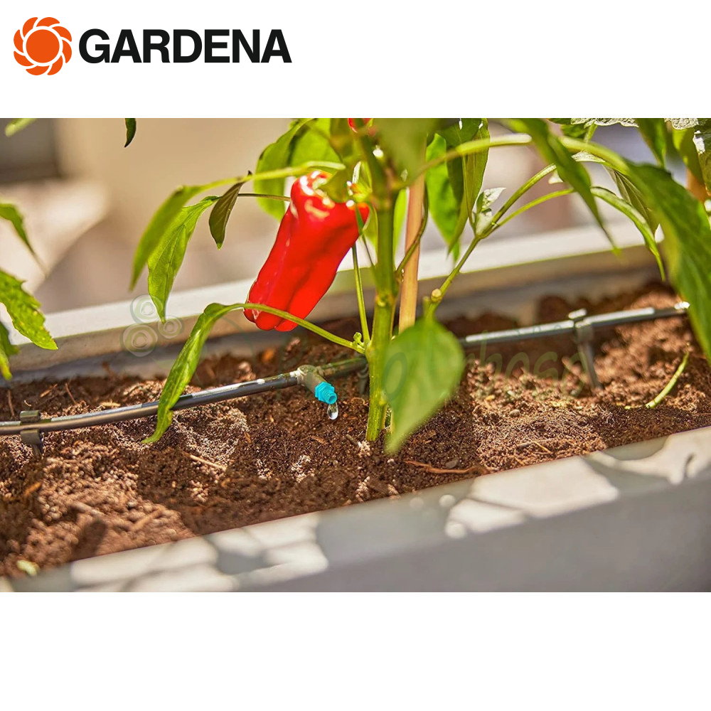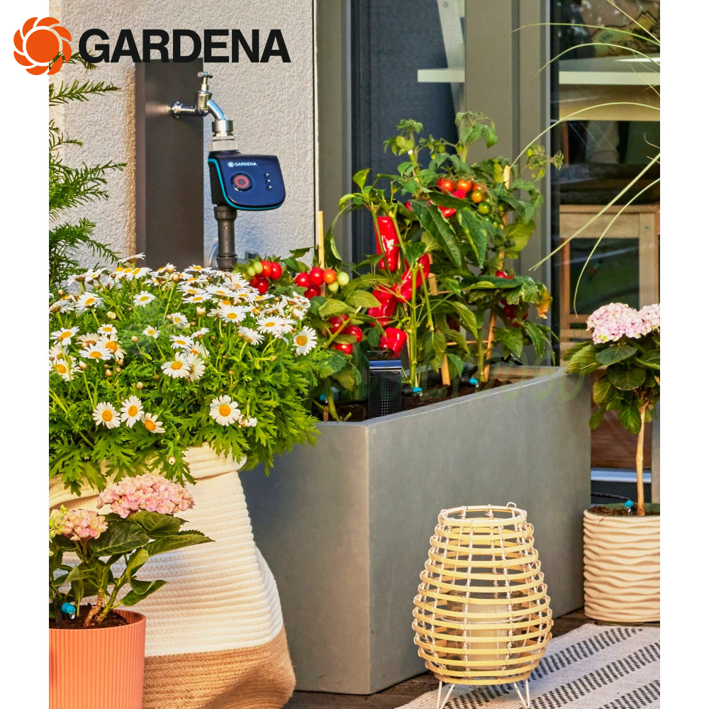 Das Gardena 13400-20 Terrassenset eignet sich zur Bewässerung von bis zu 30 Pflanzen und ist sofort einsatzbereit.