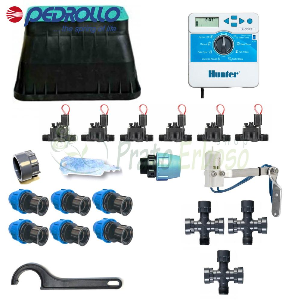 Das Set enthält alles, was Sie benötigen, außer Sprinklern, um 6 Bewässerungszonen mit Hunter -Hauptkomponenten automatisch zu bewässern.