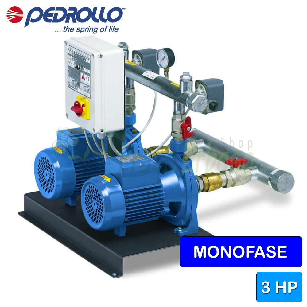 Die Druckgruppe CB2 - 2CPm 25/14B aus der CB2-CP-Serie von Pedrollo besteht aus zwei elektrischen Kreiselpumpen mit zwei Laufrädern.