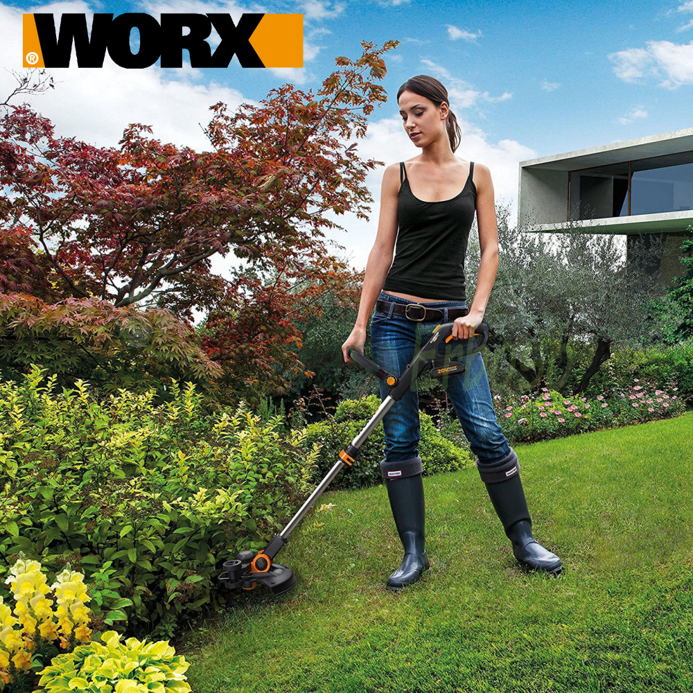 The Worx WG163E.9 trimmer is equipped with a 20-volt lithium battery, not included, to offer you more power and longer usage time than traditional batteries.
