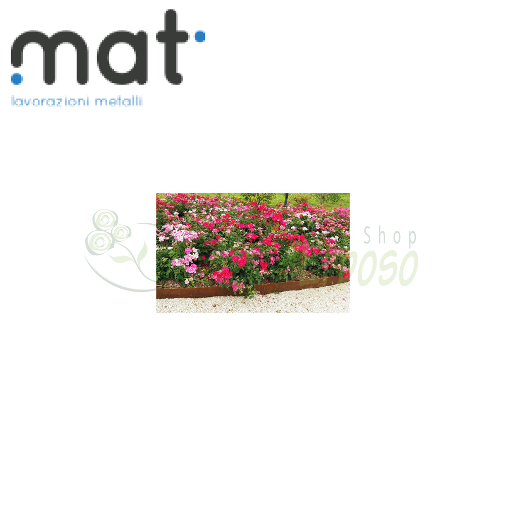 Corten steel border 1 mm thick, 100 mm high. 10 profiles of 2 meters each complete with pegs.