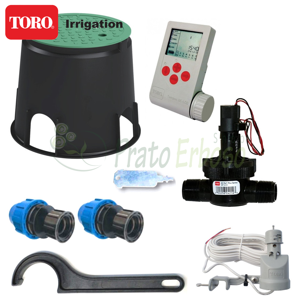 The kit contains everything needed, except the sprinklers, to automatically water 1 irrigation sector with Toro Irrigazione primary components.