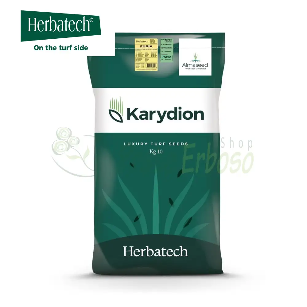 The Furia seeds from the Karydion line by Herbatech are a mixture of fescue, ryegrass and pratensis, for the creation of turf in sunny areas.