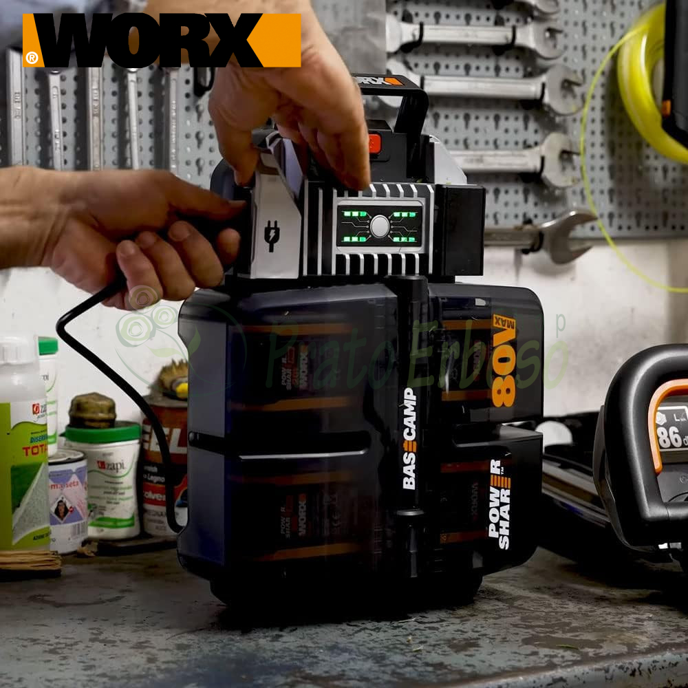 The WG761e’s Worx Basecamp system can be removed with a single button to be shared with the 80-volt backpack blower. The Basecamp’s batteries can also be shared with other 20-, 40- and 80-volt Power Share tools, making them extremely cost-effective.