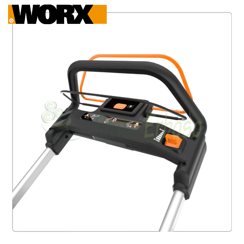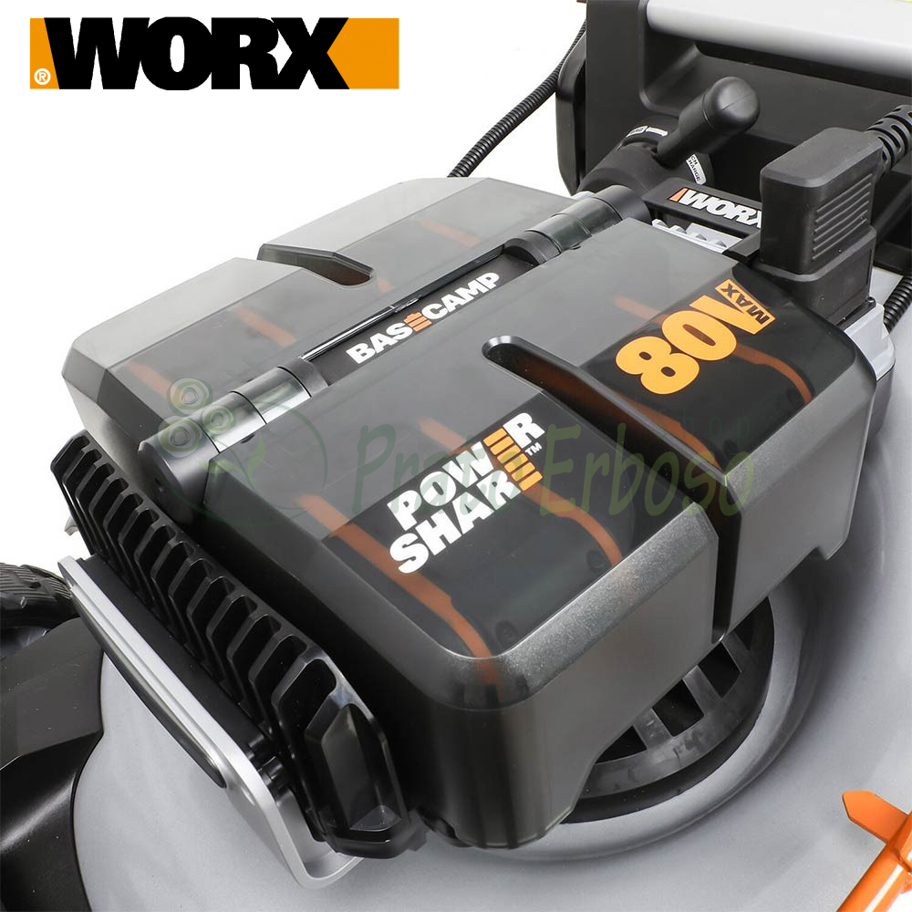 The WG761E lawnmower from the Worx Nitro series offers power, performance and autonomy similar to a petrol lawnmower, thanks to a brushless motor combined with four intelligent Power Share PRO batteries.