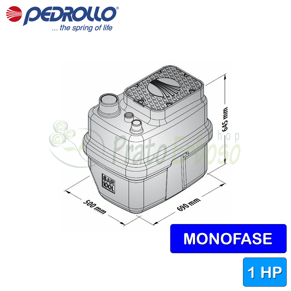 ![]() SAR 100-Dm 20 - 1 HP rainwater lifting stationThis product 100-litre tank. Pedrollo Dm 20 pump. Discharge flow rate up to 250 l/min (15 m³/h). Head up to 19 m. 0.75 kW (1 HP) motor. | |
