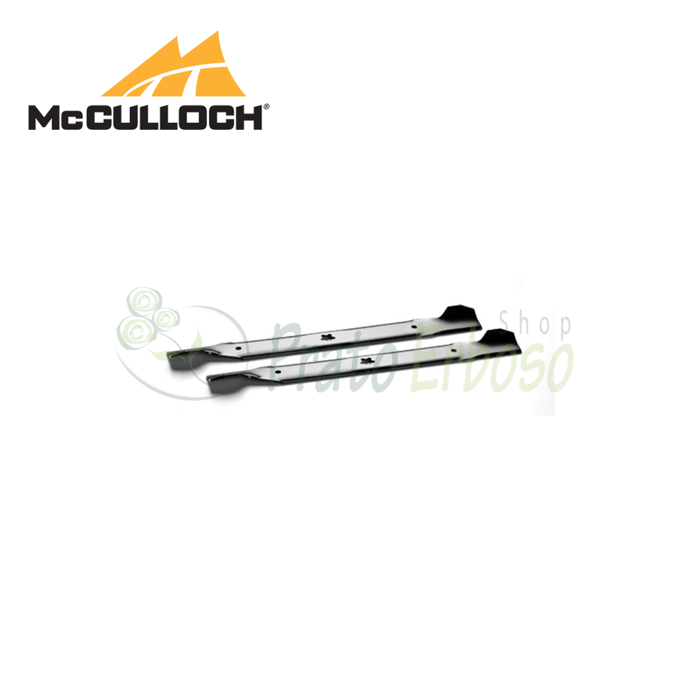 Compatible with all McCulloch side-discharge lawn tractors with a 107cm cutting width. 2 blades.