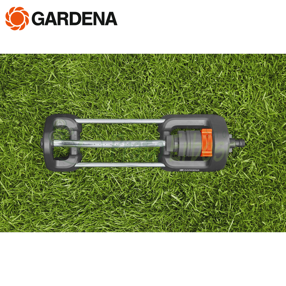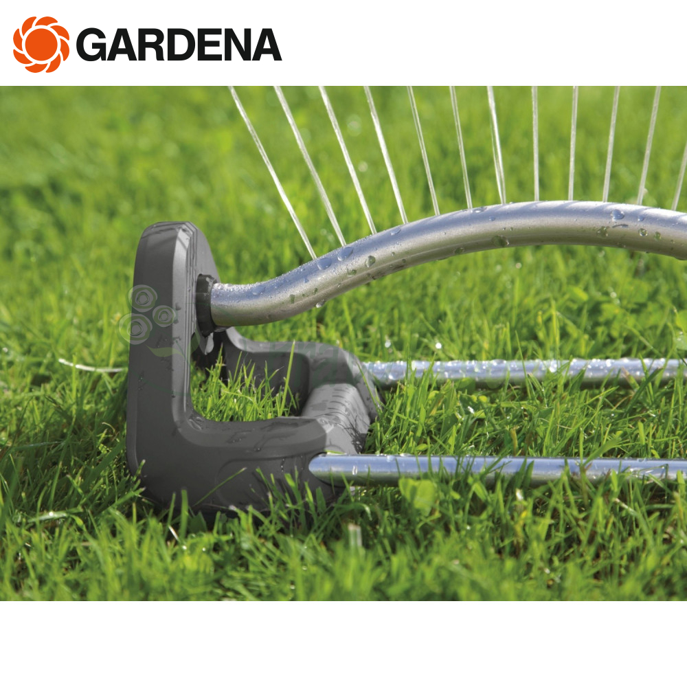 Simplemente colóquelo sobre el césped y ajuste el ancho del chorro entre 7 y 17 metros cuadrados mediante las palancas. Una vez conectada la manguera, puedes abrir el agua y tus plantas estarán regadas de manera confiable. El material duradero con componentes metálicos garantiza que el aspersor permanezca firmemente en el suelo.