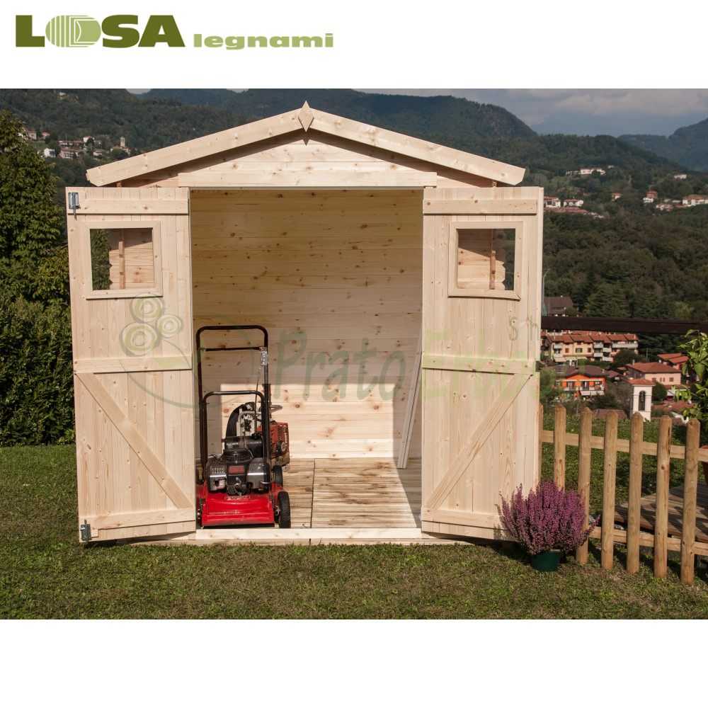 Giulia está hecha de madera de pino en bruto sin tratar. Está construido con tipología blockhouse. Está equipado con una puerta doble con cerradura y manija. El espesor de la pared es de 19 mm. El techo es de tipo OSB, excelente para aislamiento térmico.