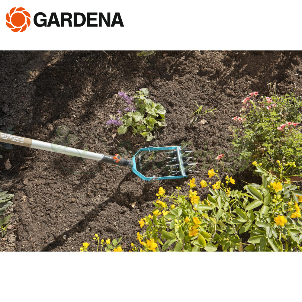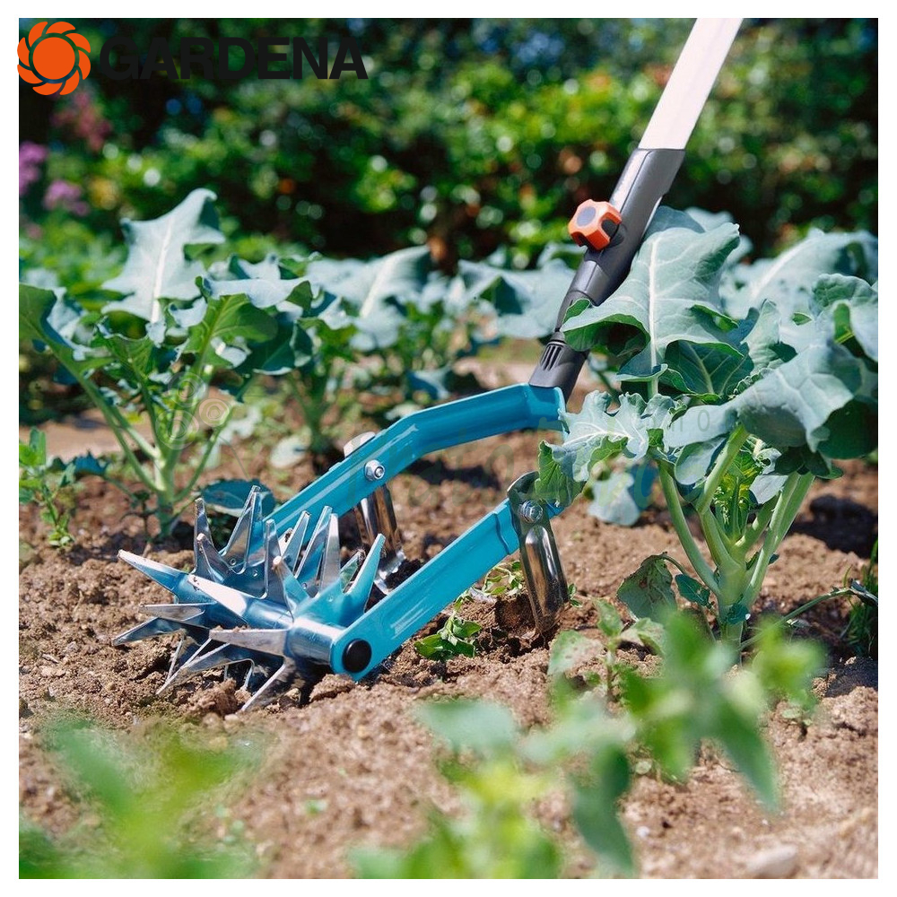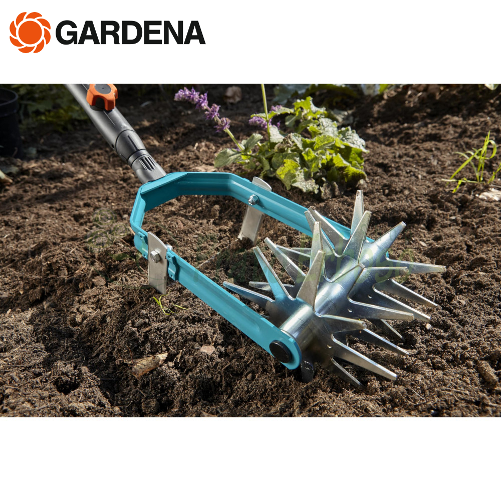 El aireador de estrella 3195-20 de la serie combisystem Gardena es especialmente adecuado para aflojar la tierra en macizos de flores y prepararla para la siembra.