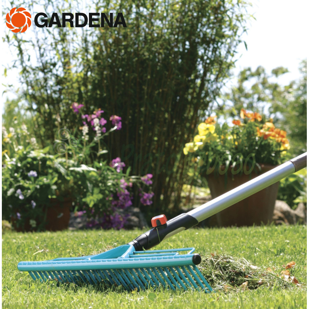 El rastrillo para césped 3381-20 es adecuado para todos los mangos combisystem Gardena , aunque Gardena recomienda un mango de 180 centímetros, dependiendo de la altura.