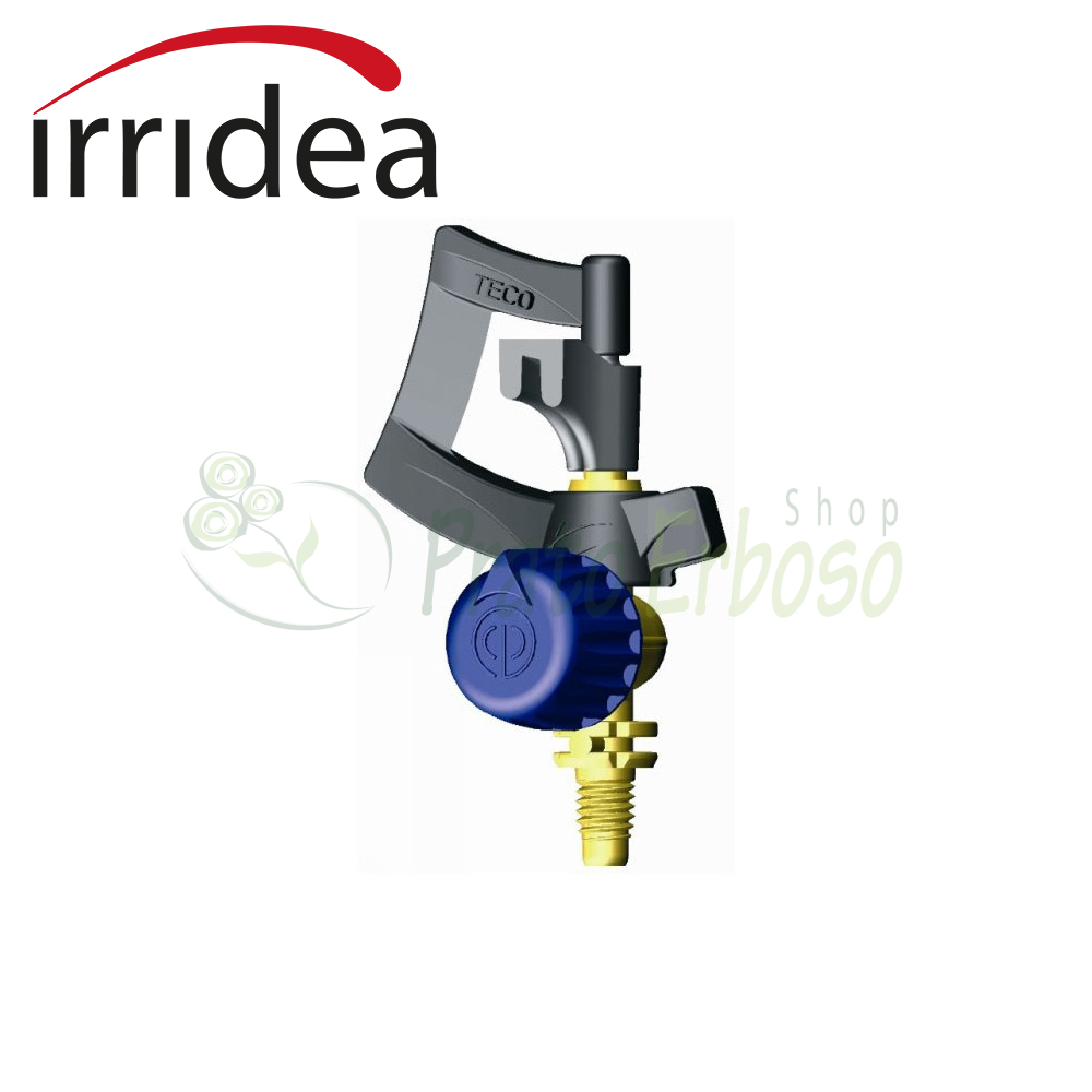 El mini aspersor rotatorio GT-SRA-FM de Irridea es ideal para regar plantas en viveros, parterres ornamentales, huertos y pequeños jardines.