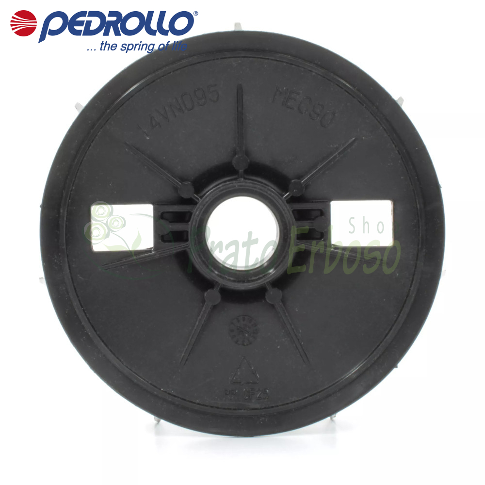 Ventilador de refrigeración para motores de bombas eléctricas Pedrollo . Para motores con eje de 24 mm de diámetro. Dimensiones del ventilador: 148 x 33 mm.