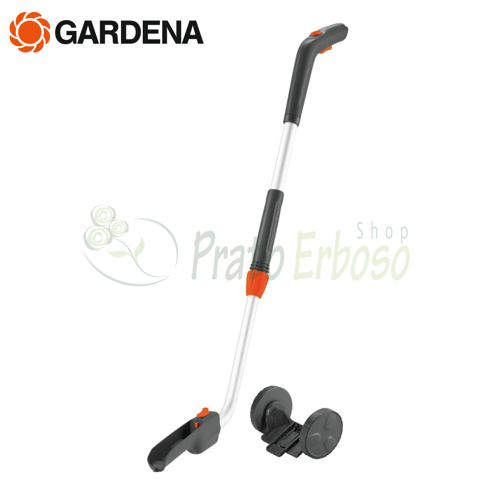 El juego 9859-20 compuesto por mango telescópico y ruedas permite cortar con precisión los bordes del césped estando de pie, sin tener que agacharse.