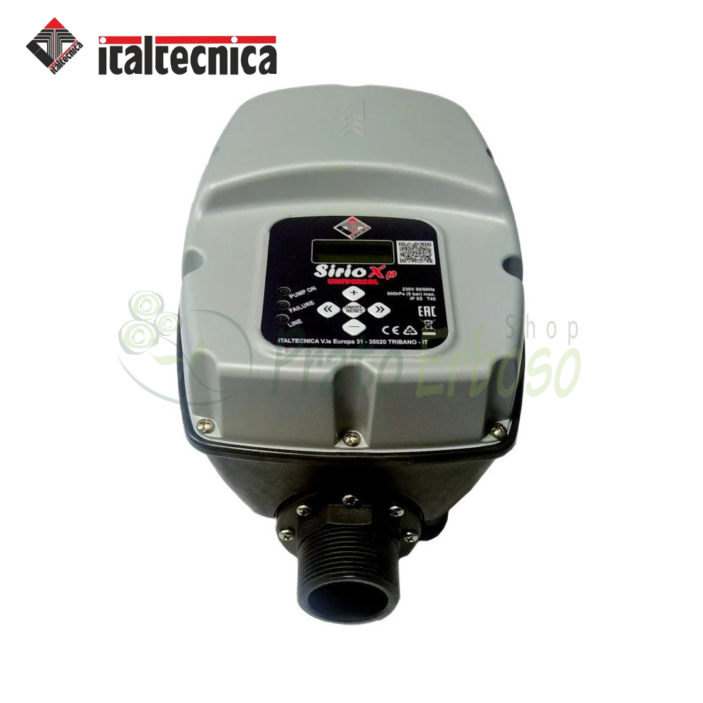 El inversor Universal Sirio XP de Italtecnica es un dispositivo electrónico que controla el arranque y la parada de una bomba eléctrica hasta 2,5 HP.