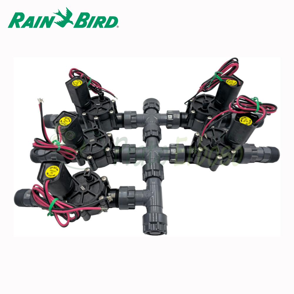 El colector montado Prato Erboso es un sistema que permite simplificar la creación del sistema de riego de forma profesional sin el problema de tener que elegir los componentes para crearlo. De hecho, incluye racores de unión de PVC de alta calidad y válvulas solenoides Rain Bird . Sólo tendrás que añadir los racores de compresión para las conexiones a las tuberías que elegirás en función del tamaño de las tuberías que quieras utilizar entre DN16, DN20, DN25, DN32.