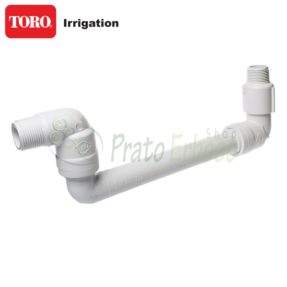 Los 3 codos pueden girar uno sobre otro, y permiten orientar el aspersor en la dirección deseada, nivelándolo respecto a la altura del césped, controlando la perpendicularidad y, por último, protegiendo la red y el aspersor del efecto de cargas pesadas.