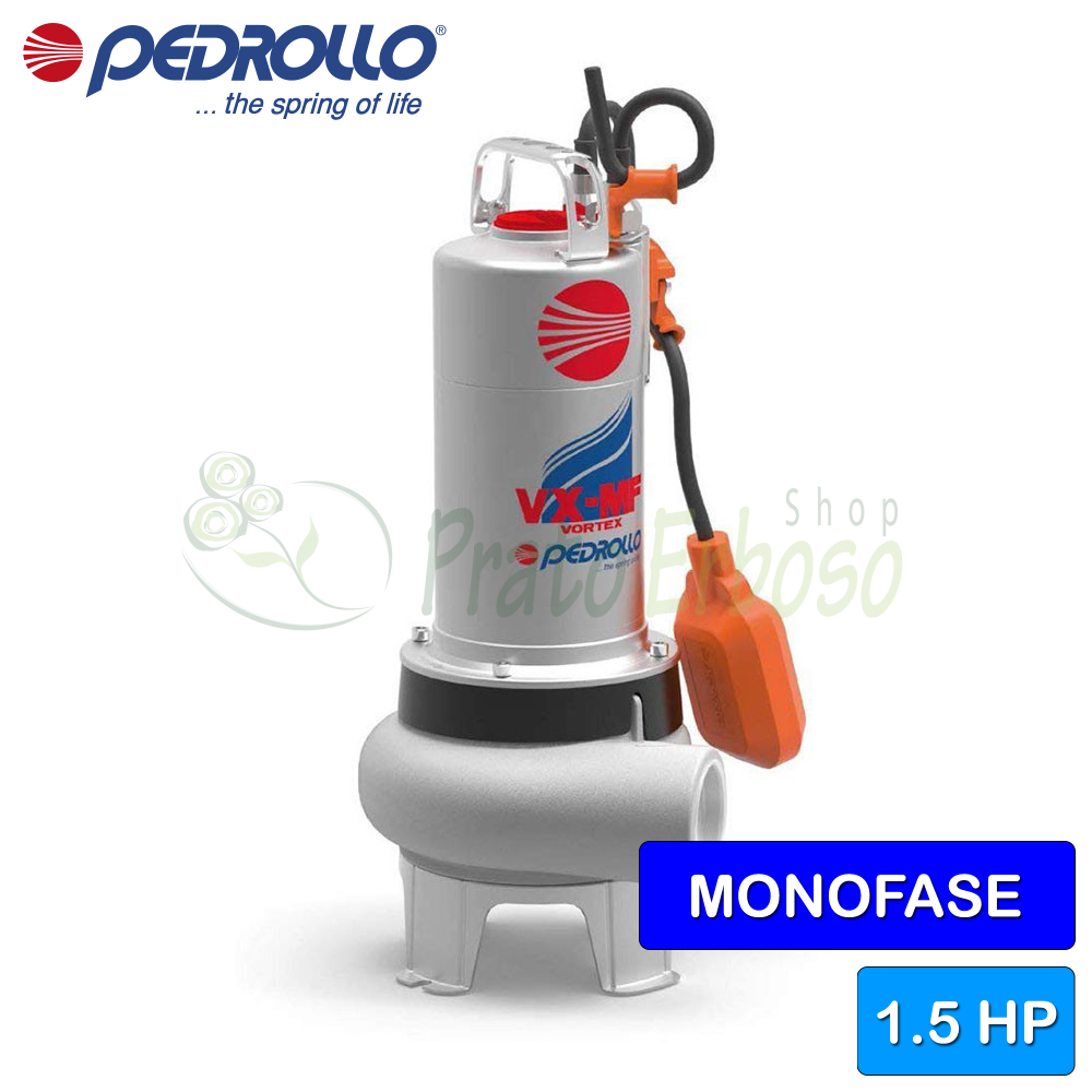 VXm 15/50-MF - Bomba eléctrica para aguas residuales VORTEX monofásica de 1,5 HP
