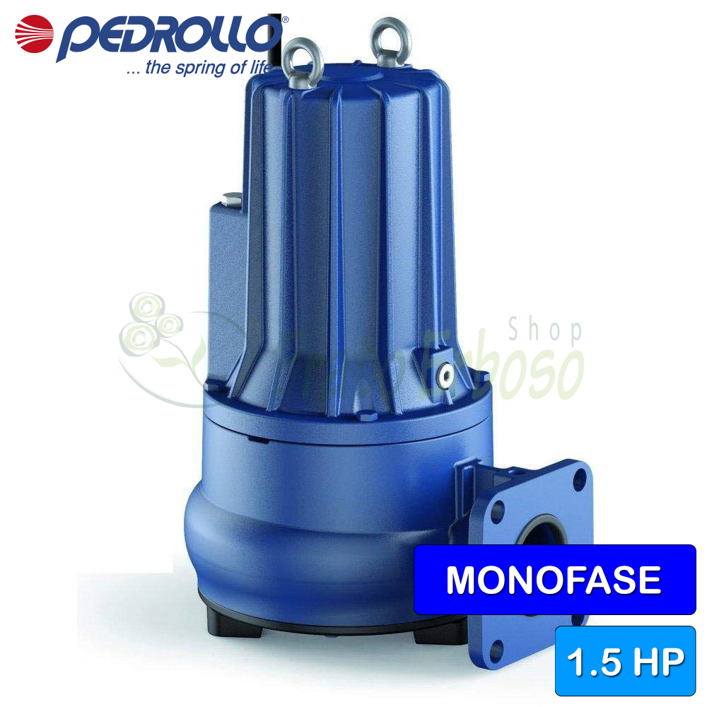 Caudal de hasta 850 l/min (51 m³/h). Altura de impulsión de hasta 8 m. Motor de 1,1 kW (1,5 HP).