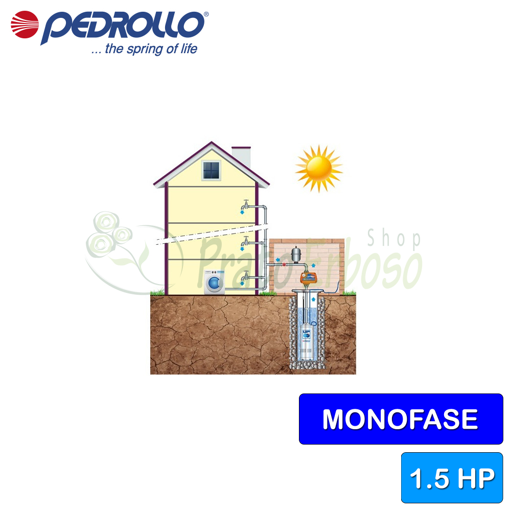 La bomba eléctrica sumergible UPm 8/3-GE de la serie UP de Pedrollo tiene un motor de 1,5 HP.