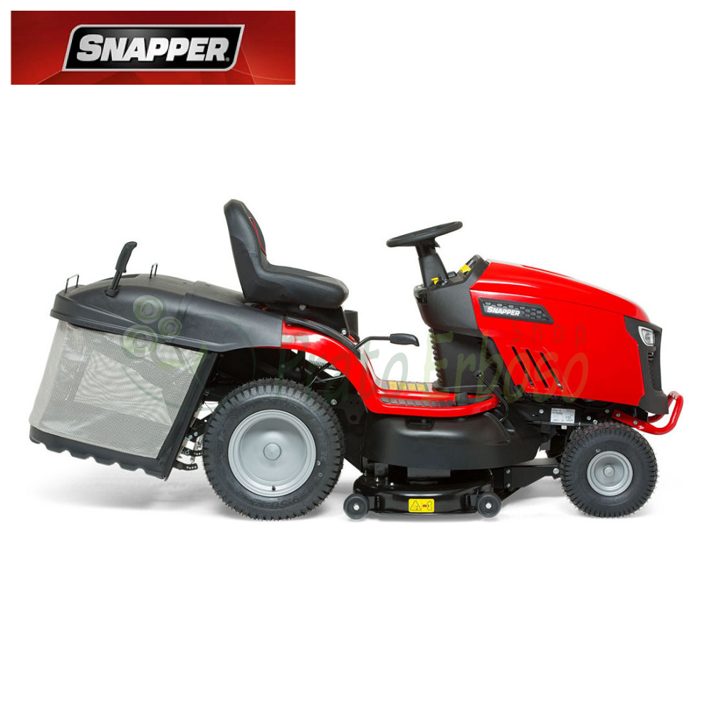 Motor bicilíndrico, gran recogedor de hierba de 350 litros, kit mulching incluido, eje de fundición y acabados en acero completan la oferta.