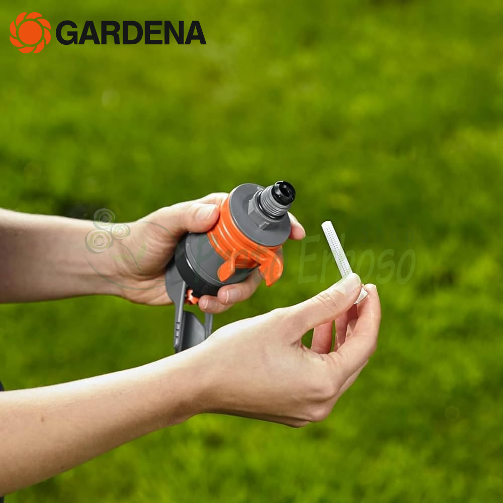 L'arroseur est fourni avec un connecteur et un capuchon Gardena System.