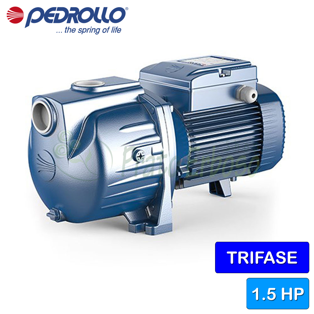 Débit jusqu'à 250 l/min (18 m³/h). Hauteur de refoulement jusqu'à 24,5 m. Moteur de 1,1 kW (1,5 CV).