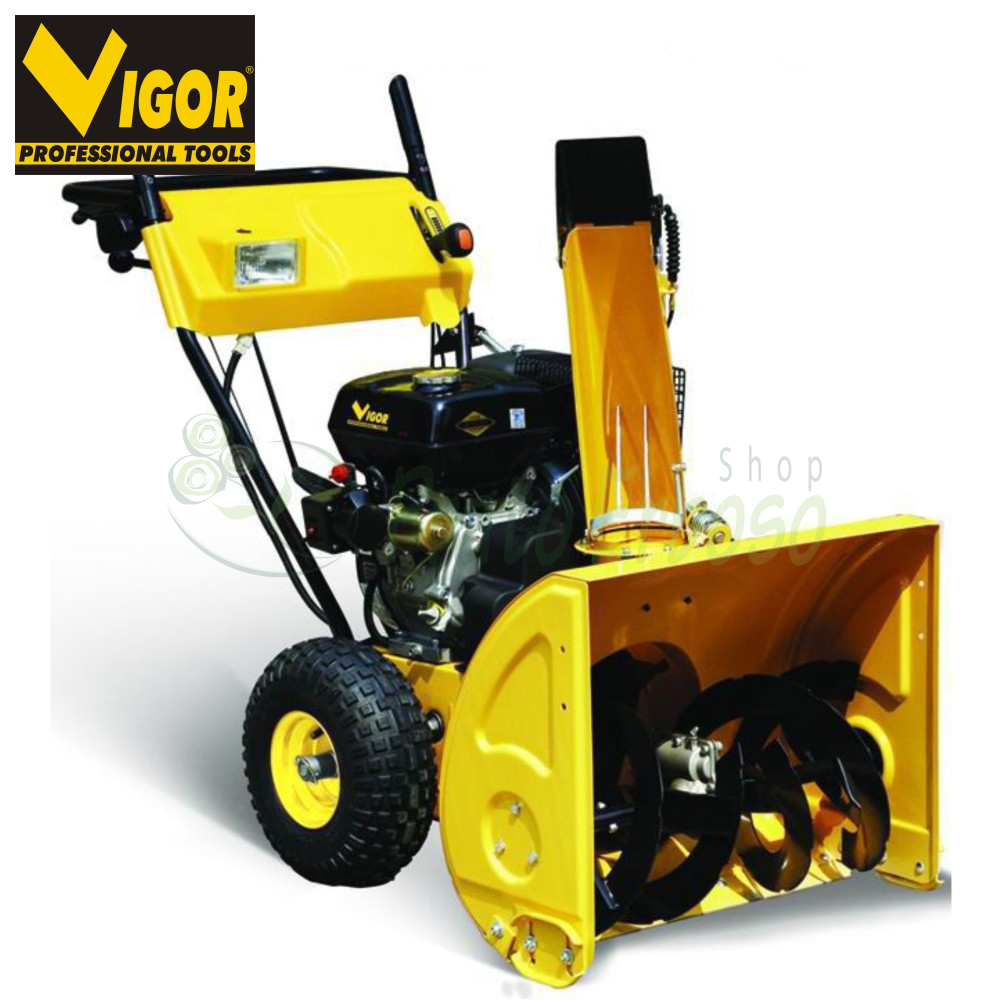 Chasse-neige Vigueur Neigeux 80 est équipé avec le moteur à essence d'Hiver 4t E2 212 cc 7.1 hp avec démarreur à cordon et électrique 230V.