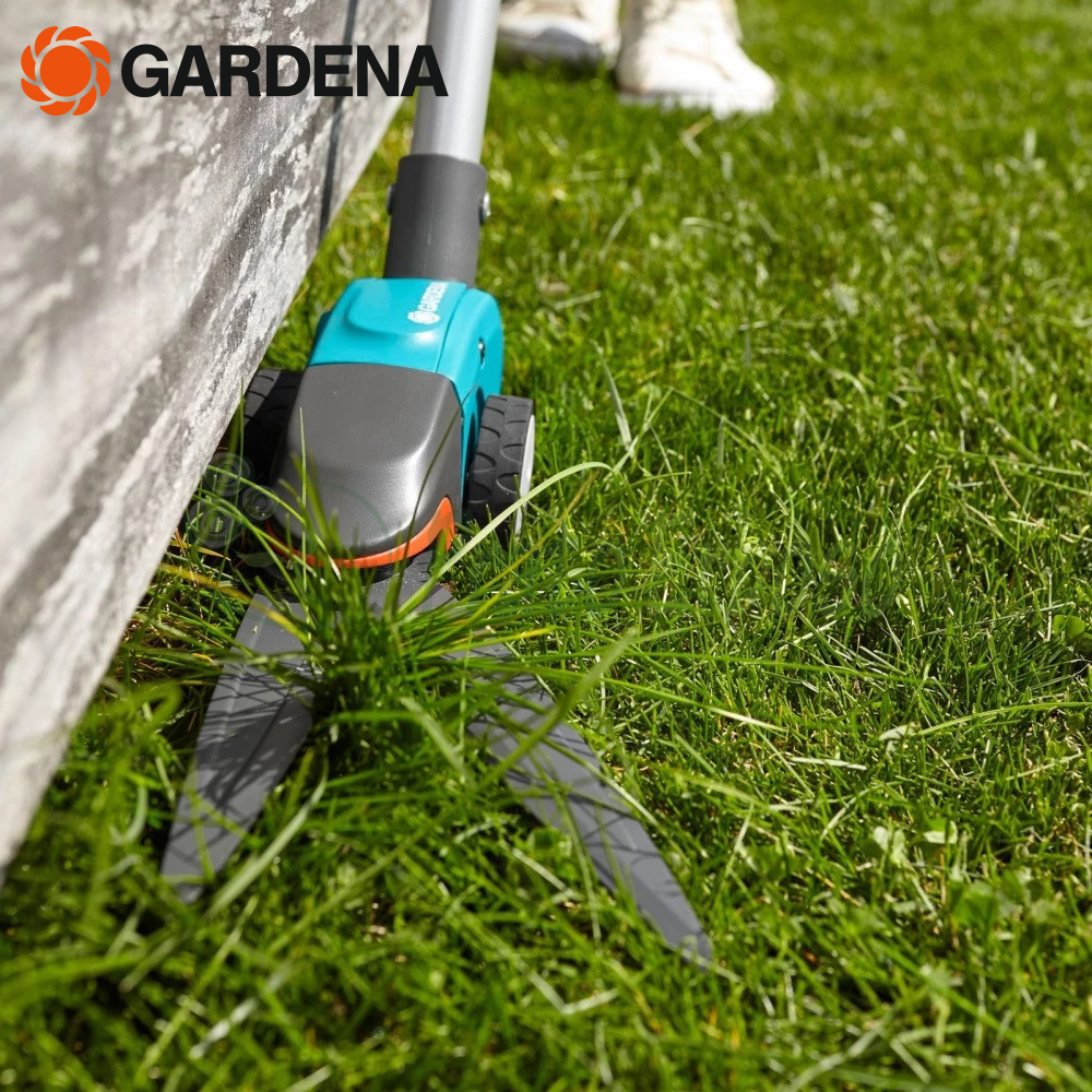 Le cisaille à gazon rotative Gardena Comfort 12100-20 avec poignée permet une coupe facile et précise des bordures de pelouse tout en maintenant une posture droite et en préservant votre dos.