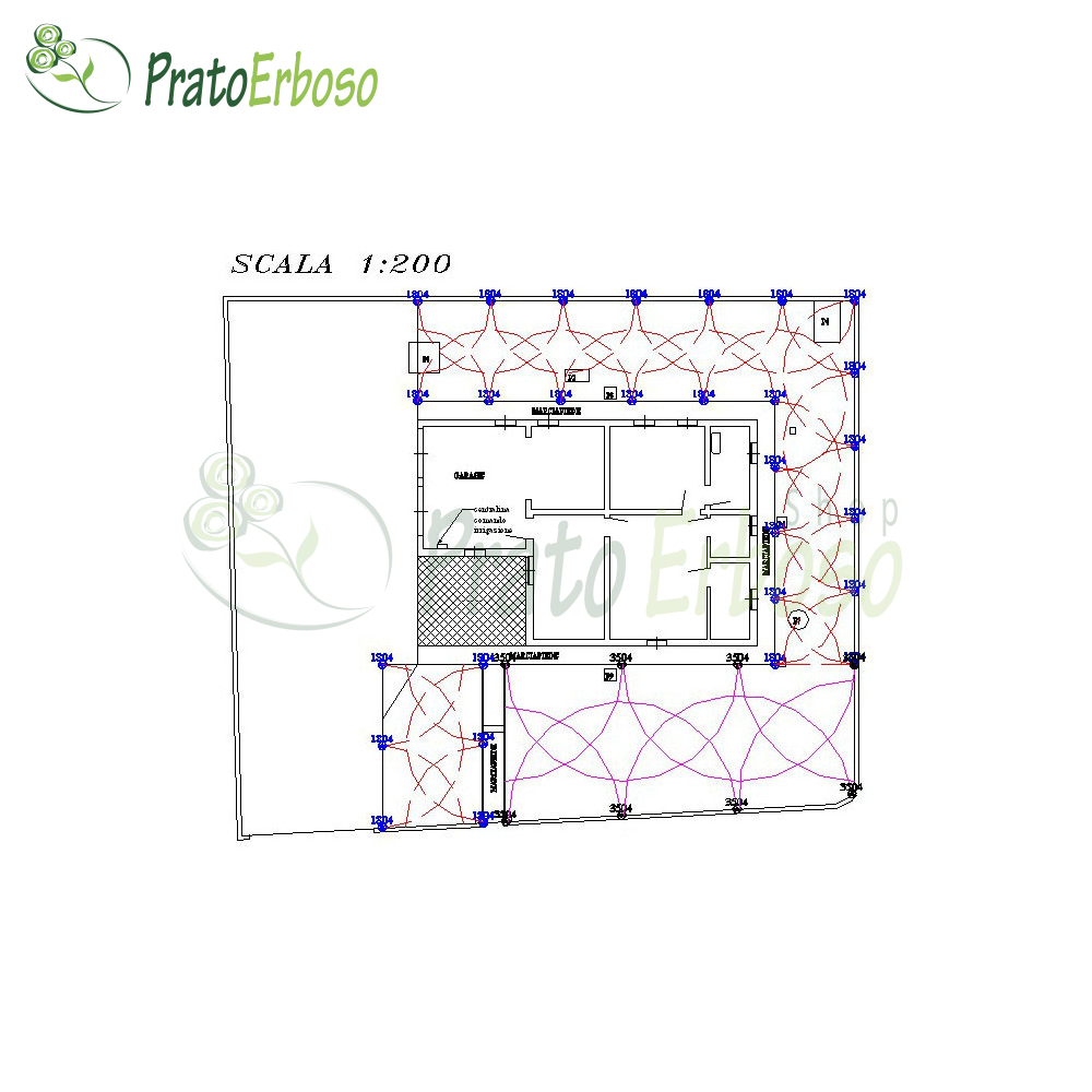 Progetto di impianto di irrigazione per giardino da 100 a 500 mq con prato