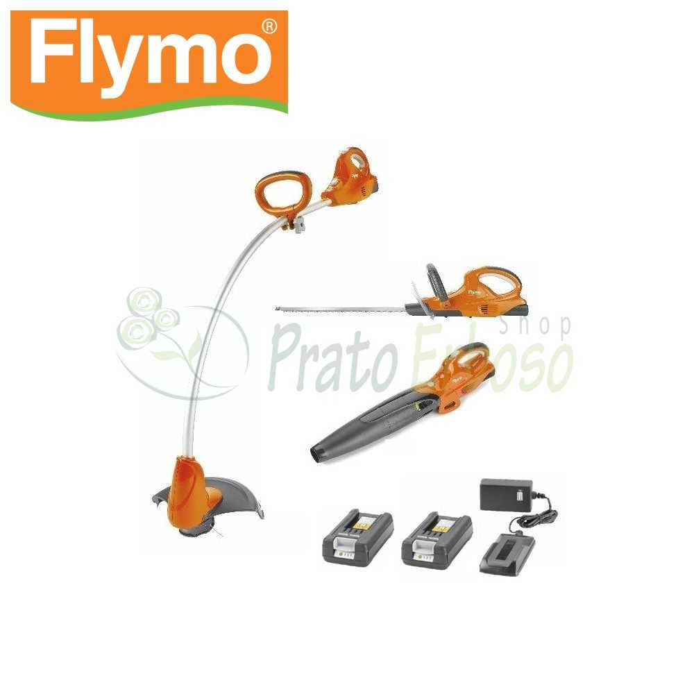 Le kit comprend une tondeuse à gazon avec une largeur de coupe de 30 centimètres, un taille-haie avec une lame de 42 centimètres de long et un écart de 16 millimètres et un souffleur avec une vitesse de soufflage allant jusqu'à 128 km/h.