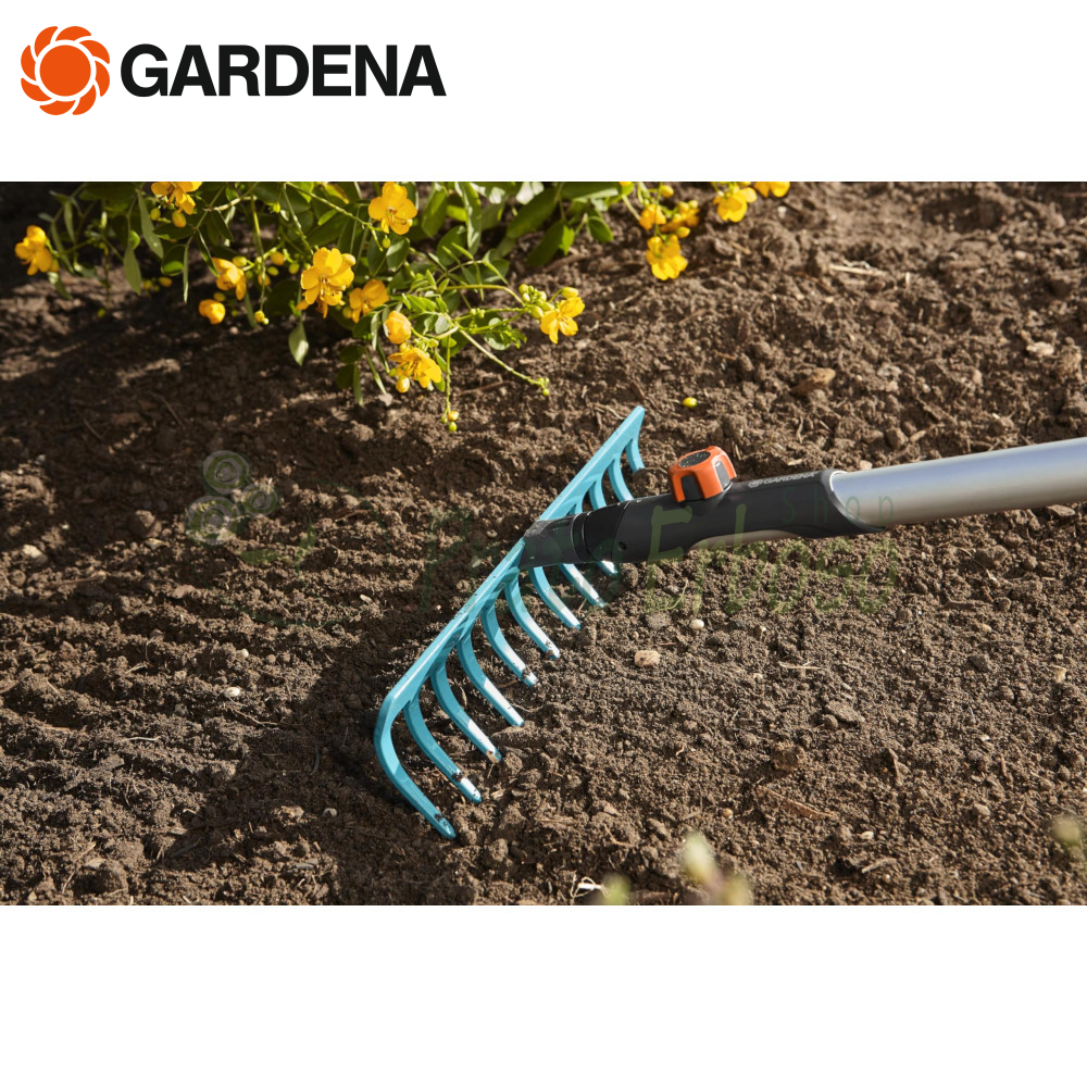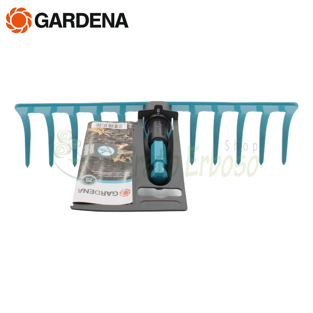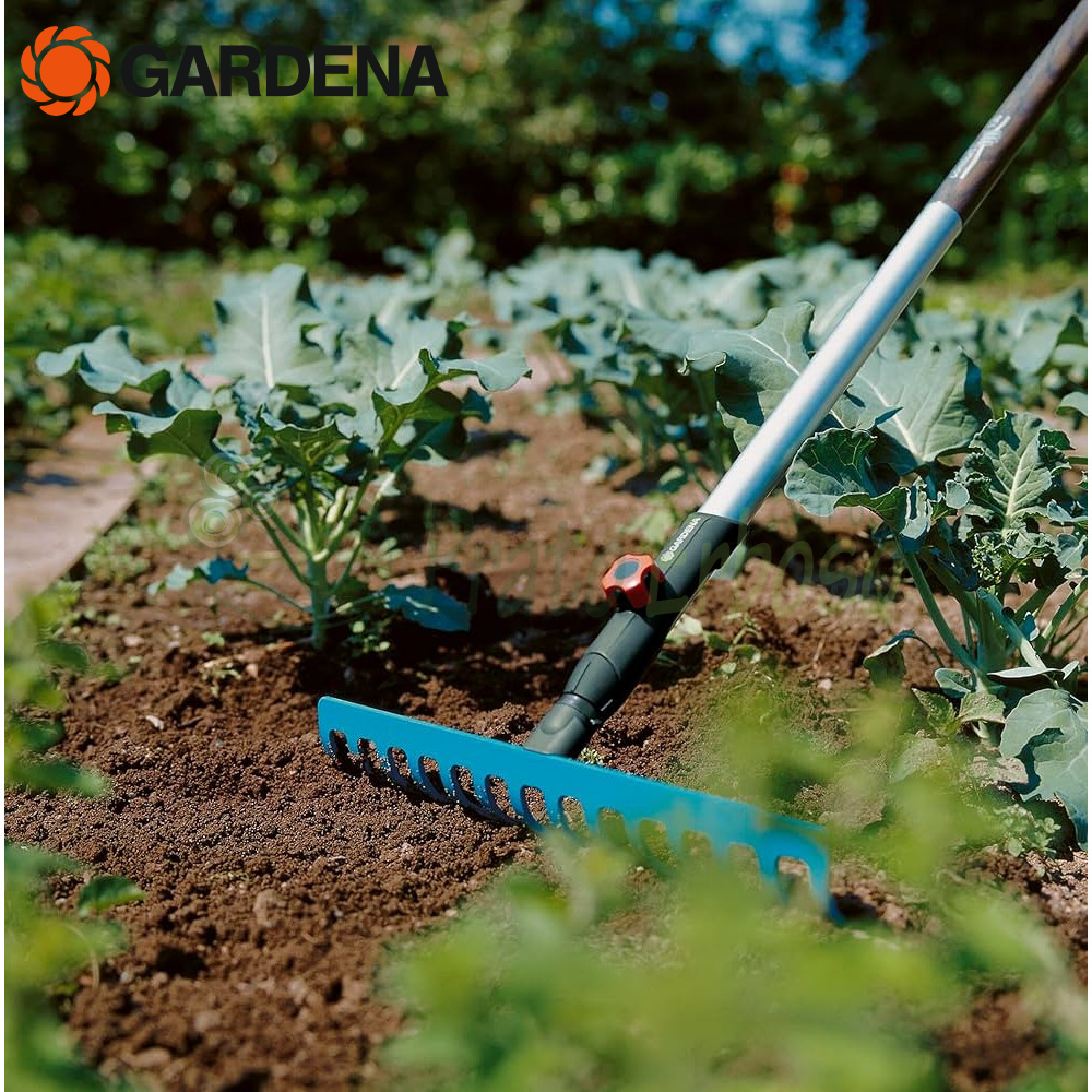 Le râteau est compatible avec tous les manches combisystem Gardena . Un manche de 150 cm est recommandé, cependant le choix dépend de la taille de l'utilisateur.