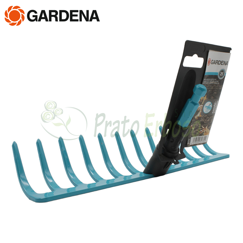 Le râteau 3177-20 de la série Gardena combisystem est un outil polyvalent pratique particulièrement adapté au ratissage, au nivellement et au travail du sol.