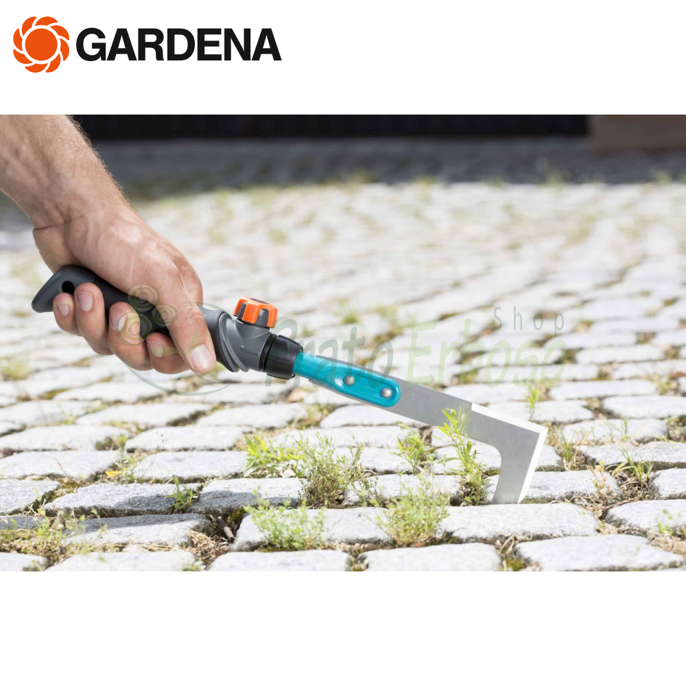 Le grattoir 8927-20 de la série Gardena combisystem est idéal pour éliminer sans effort la mousse et les mauvaises herbes des joints et des murs en pierre ou en carrelage.
