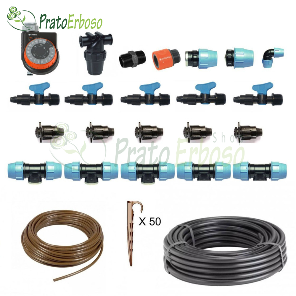 Prato Erboso orto e giardino Pro est un kit complet et facile à installer qui vous permet de créer un système d'irrigation en le divisant en zones indépendantes avec des durées différentes.