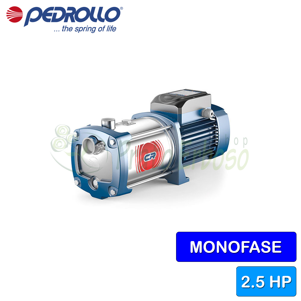 Avec turbine en acier inoxydable. Débit jusqu'à 90 l/min (5,4 m³/h). Hauteur de refoulement jusqu'à 111 m. Moteur de 1,8 kW (2,5 CV).