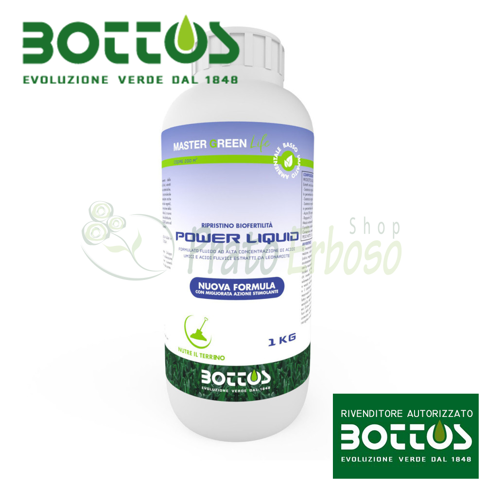 Power Liquid de Bottos est un engrais liquide pour amendement du sol avec une forte concentration d'acides humiques extraits de la léonardite qui augmente la fertilité du sol.