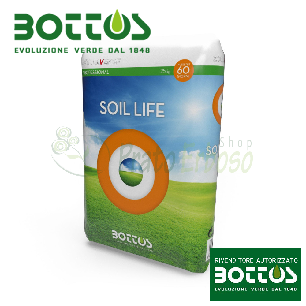 Soil Life est enrichi d'un pourcentage élevé de substance organique (16%) avec l'ajout de micro-organismes spécifiques (Endomycorhize, Trichoderma et Bacillus Subtilis) utiles pour lutter contre les maladies fongiques typiques de la pelouse. Soil Life est adapté à la récupération de la biofertilité des sols aussi bien en préparation des semis que tout au long de l'année.